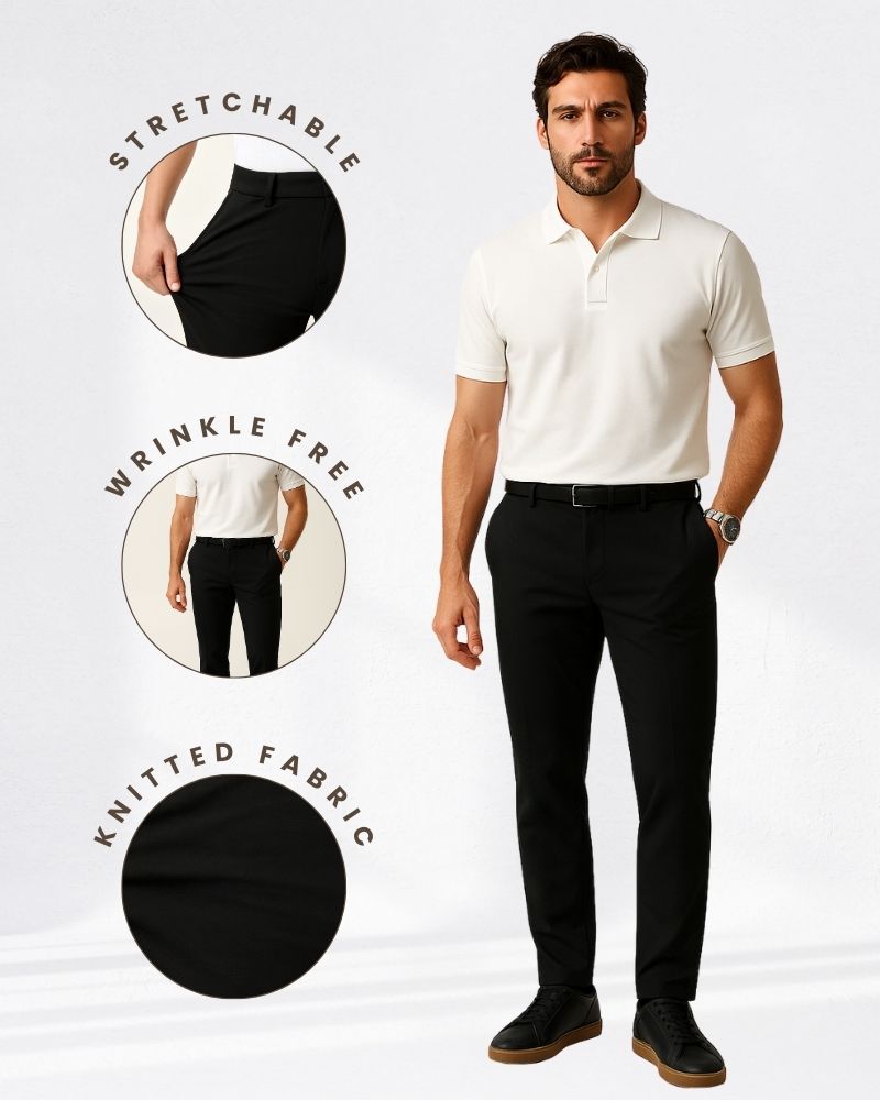 Description: Add comfort & style to your bottom-wear with this slim-fit black stretchable pants.