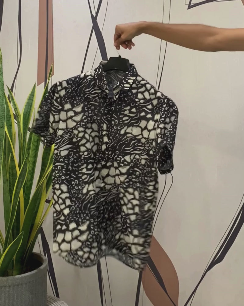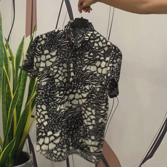 Shirt Description: Half-sleeves black shirt with print of leopard skin. Perfect for outdoor casual wear. Soft fabric for optimum comfort.