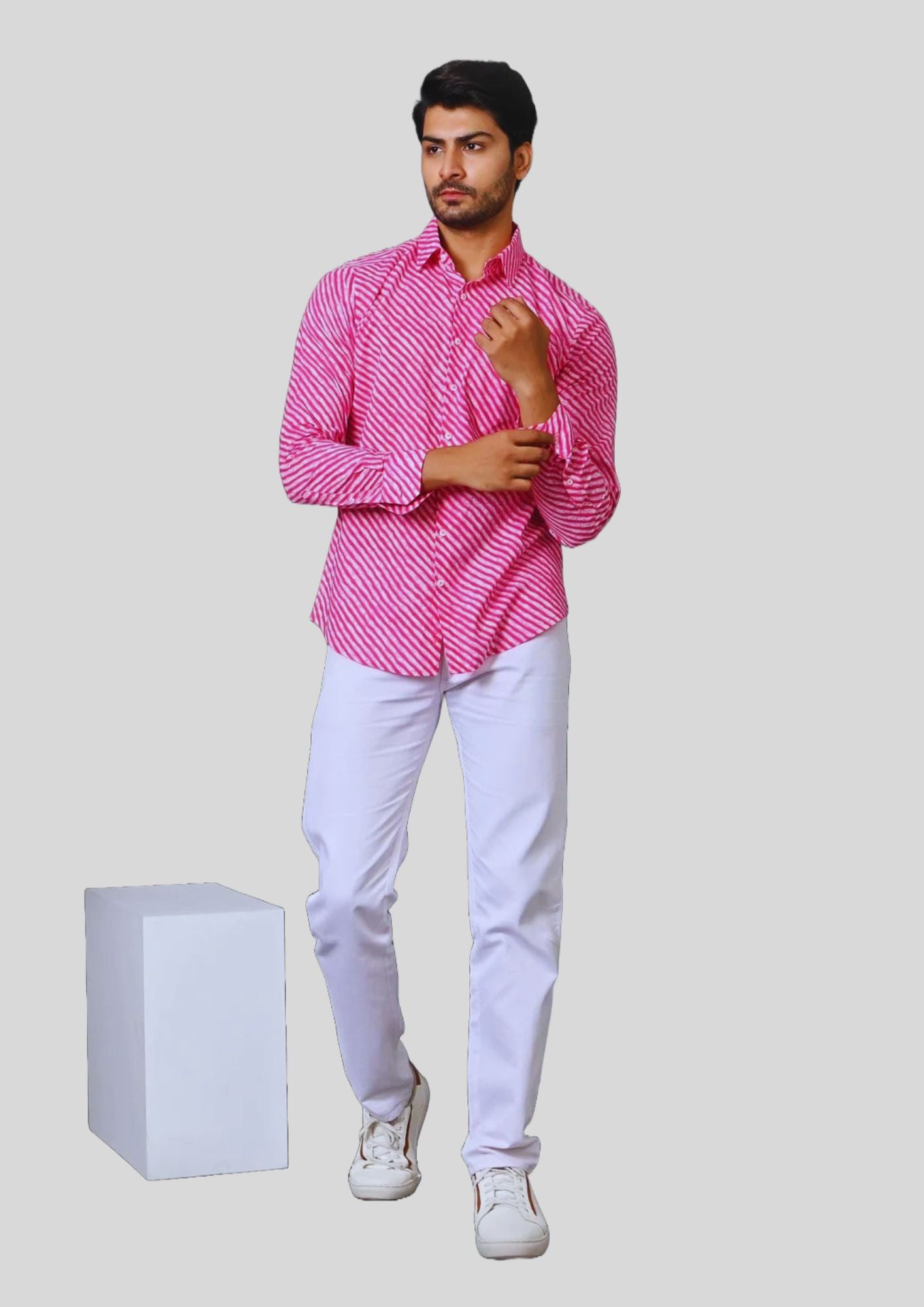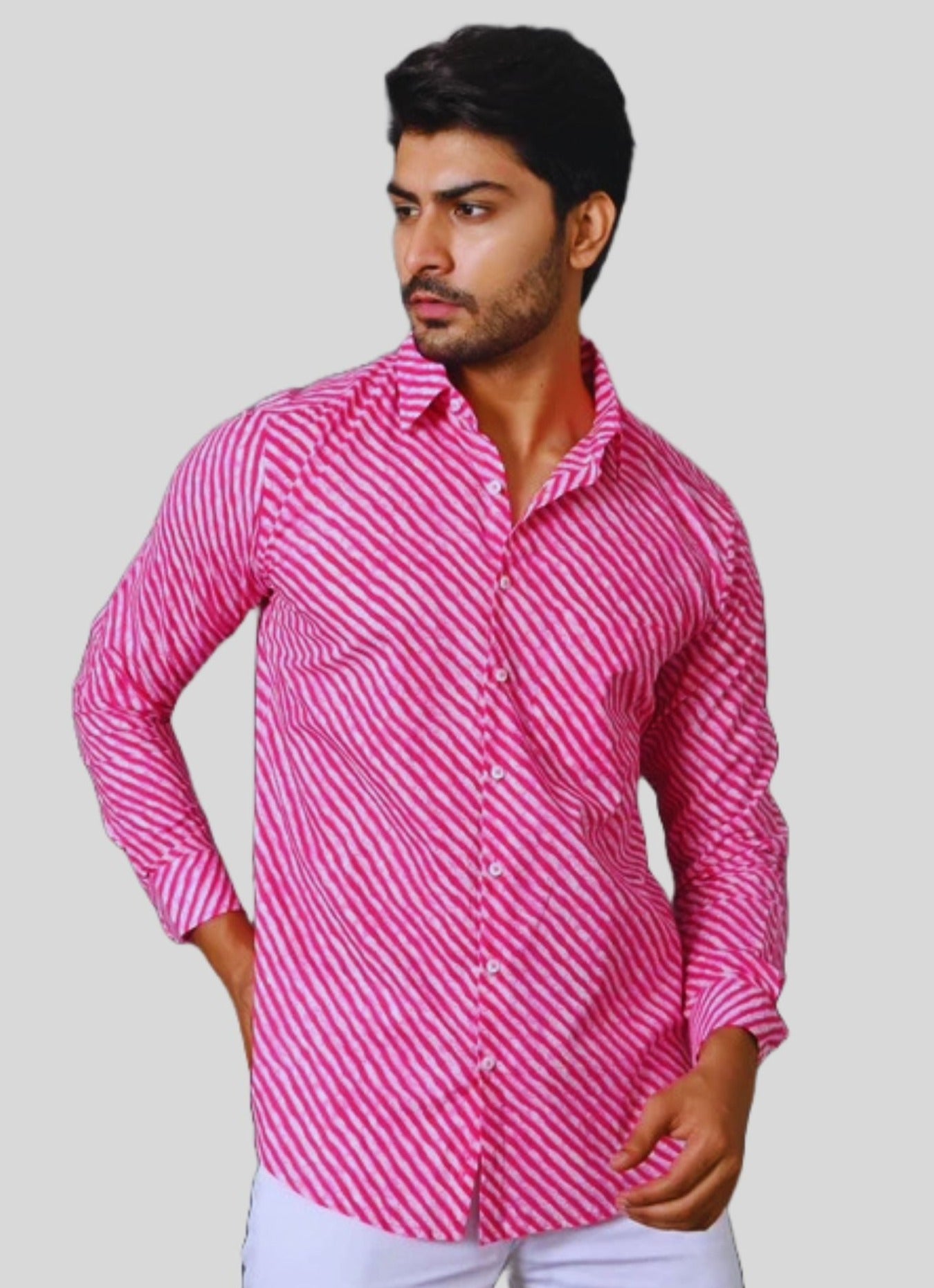 Shirt Description: Full Sleeve Shirt with pink jaipuri prints. Best for outdoor casual wear.